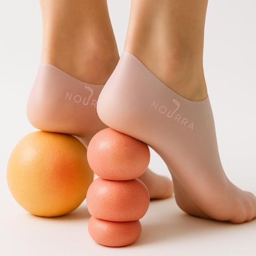 Say goodbye to cracked heels and dryness. Nourra pairs organic ghee’s natural healing with silicone socks’ deep lock-in technology. A simple ritual, powerful results.